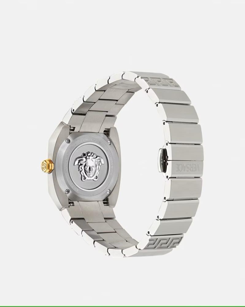 سُميت تيمنًا النجم الأكثر لمعانًا في كوكبة العقرب، وتتميز نسخة السيدات من ساعة Antares بشخصية جريئة، حيث تضم علبة هندسية هيكلية ورموز Versace الأساسية على الميناء والسوار، بما في ذلك شعار Versace ورمز Medusa ثلاثي الأبعاد ونقوش Greca. جميع ساعات Versace مضمونة بعلامة «Swiss Made». كل الفولاذ المقاوم للصدأ معاد تدويره.