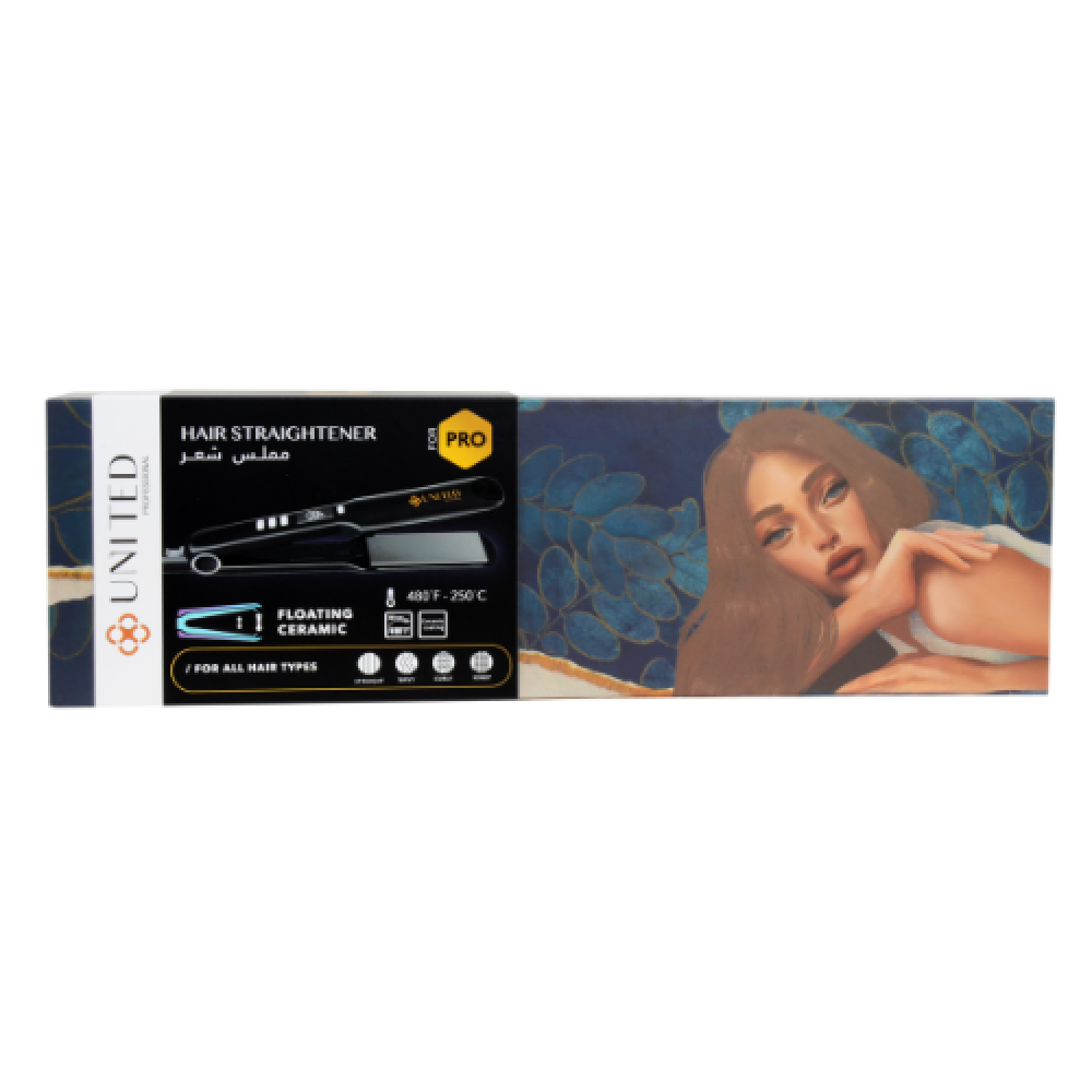 يونايتد برو مملس الشعر هو جهاز متطور مصمم لتنعيم الشعر وتصفيفه بشكل فعال وسريع. يتميز هذا المملس بألواح سيراميك متطورة توزع الحرارة بشكل متساوٍ، مما يحمي الشعر من التلف ويمنحه مظهراً صحياً ولامعاً. بالأضافة الى شاشة الكترونية